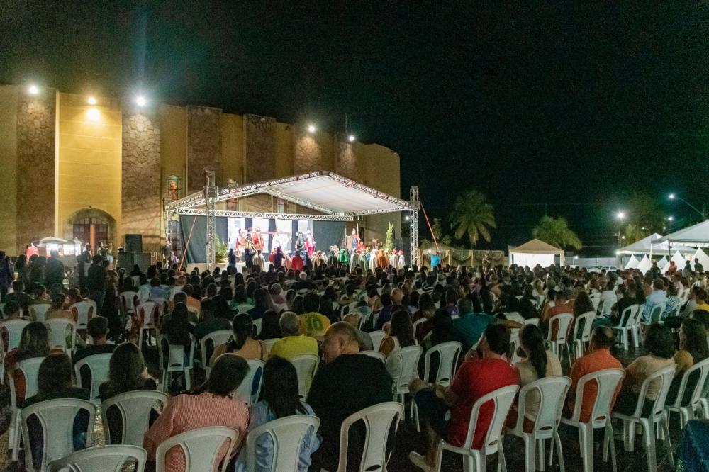 Na noite da última sexta-feira, dia 29 de março, os moradores de Paraíso do Tocantins tiveram a oportunidade de participar de um evento marcante e significativo: a Via Sacra Encenada. Realizada como parte da programação da 64ª Semana Santa na cidade, a encenação aconteceu no estacionamento da Igreja Matriz São José Operário, reunindo fiéis e interessados em reviver os momentos cruciais da paixão e morte de Cristo. O prefeito Celso Morais expressou sua satisfação em participar deste momento espiritual, destacando a importância desse momento para a comunidade católica de Paraíso do Tocantins. "Nesta sexta feira da Paixão, estamos chegando aqui, na Matriz São José Operário, para participar da Via Sacra. Hoje nós vamos ter um teatro em encenação da morte e ressurreição de Cristo. Com certeza é um momento de muita fé.” A Via Sacra Encenada contou com uma equipe dedicada, liderada pelo diretor Florisvaldo Gama, que ressaltou os desafios enfrentados durante os preparativos: "Nós lutamos durante 30 dias, noites adentro, finais de semana, feriado, mas o Senhor nos capacitou. Tivemos provações, lutas, tivemos pessoas que adoeceram, mas a gente sabia que era um momento difícil de quaresma e que ia ser muita provação, mas que a gente ia ter a vitória:” A encenação teve um papel crucial na transmissão da mensagem de fé e amor, como destacou Michael Jhonattam, que interpretou Jesus no teatro: "É uma experiência muito forte, porque não passamos nem um terço daquilo que Jesus passou em meio aos nossos pecados, mas é uma forma de poder demonstrar um pouco, poder transmitir essa mensagem de Deus, poder transmitir tudo aquilo que Deus sempre vai nos ensinar através desse teatro, através dessa encenação, através desse pequeno gesto, que é muito gratificante para todos que participam.” A secretária municipal de Meio Ambiente, Cultura e Turismo, Patrícia Nascimento, destacou a parceria entre as paróquias Nossa Senhora da Perpétua Socorro e São José Operário com a prefeitura, que proporcionou uma programação abençoada e significativa para a comunidade: "Mais um dia incrível dessa semana abençoada graças às paróquias da nossa cidade que com essa parceria com a prefeitura, conseguimos realizar uma programação sensacional e abençoada.”